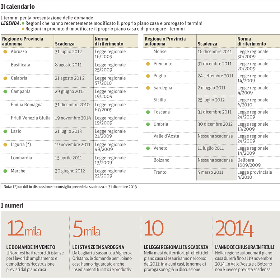 IL Calendario del Piano Casa  secondo casa24.ilsole24ore.com